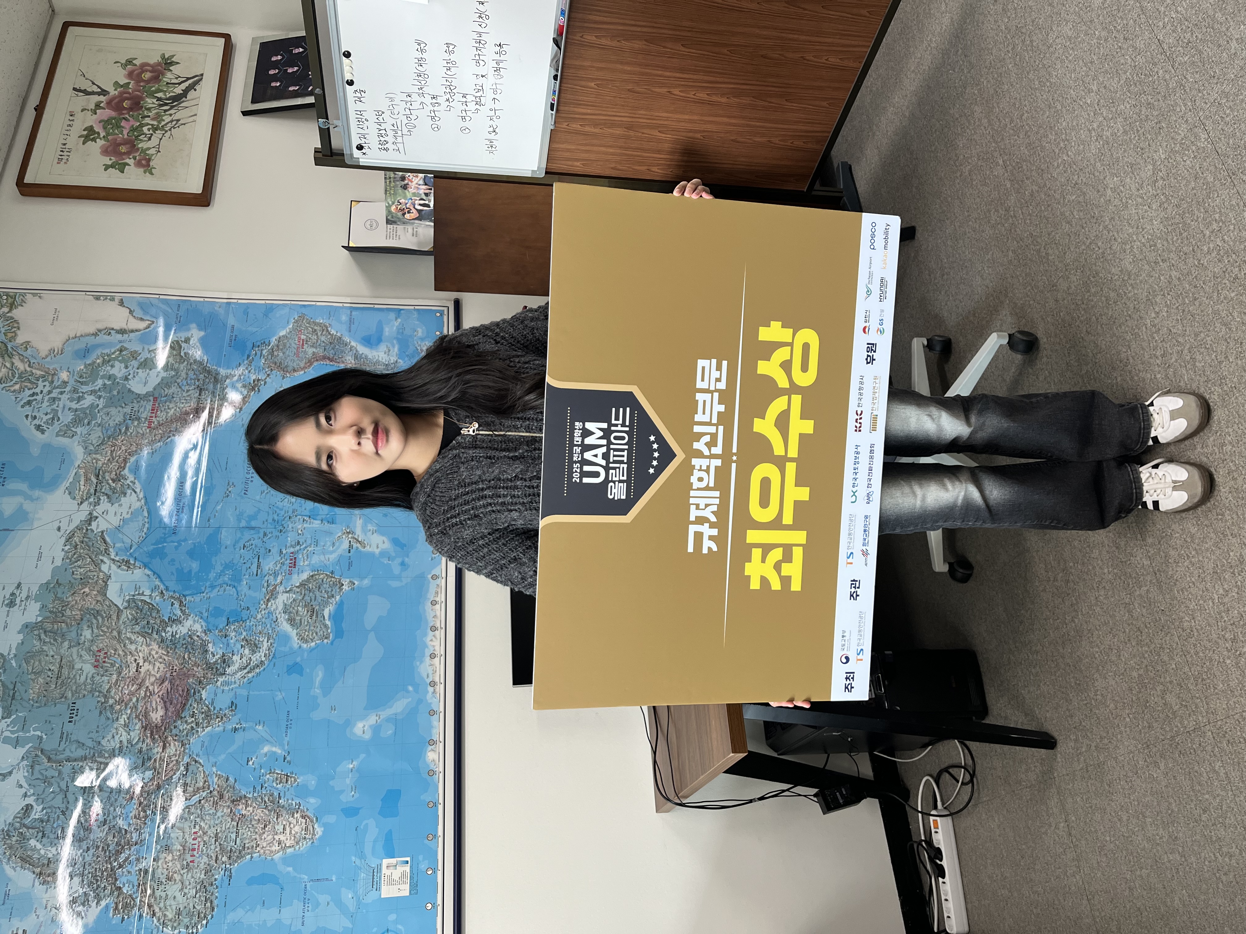 사진설명 :‘2025년 전국 대학생 UAM 올림피아드 대회’에서 최우수상을 수상한 김하늘 학생이 기념촬영을 하고 있다. |