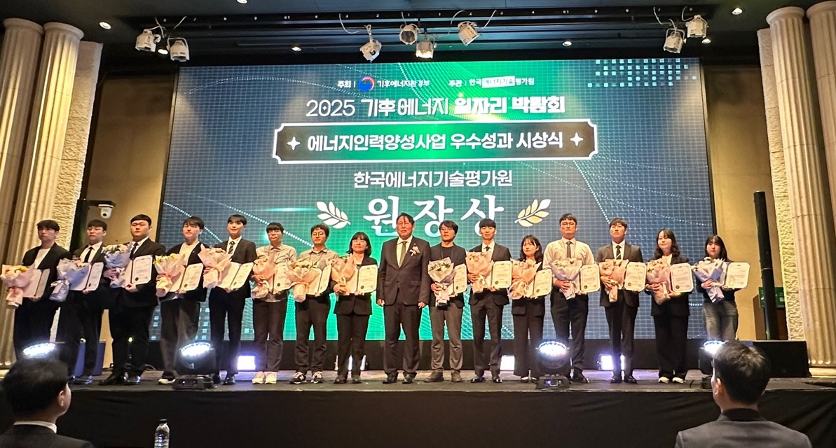 사진설명 : 최근 한국에너지기술평가원 원장상을 수상한 강채은 학생(오른쪽에서 두 번째)이 기념사진을 촬영하고 있다. |